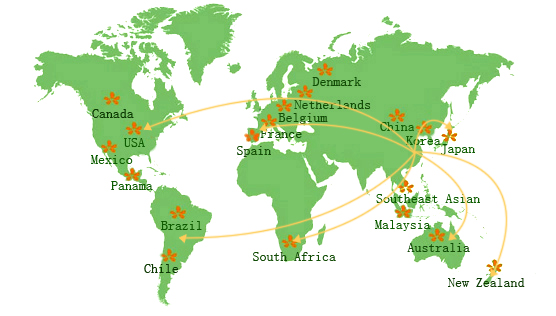 公司在日本、美國、南美、歐洲等地設(shè)有分公司或有合作伙伴,充分與國際接軌,開拓國際市場,大量引進(jìn)世界各地的優(yōu)良品種和種質(zhì)資源,在國內(nèi)研究開發(fā)、加工、示范、推廣,再分銷到世界各地。