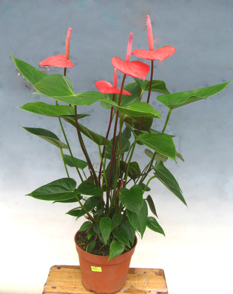 “陽(yáng)光紅心”紅掌植株中小型,株型緊湊,花紅色,呈三角狀,花型平展,高出葉面5-10cm,紅色肉穗花序,花梗紫紅;易分蘗,叢生性好,抗病性強(qiáng),可用于盆花觀賞,水培觀賞,室內(nèi)綠化等。